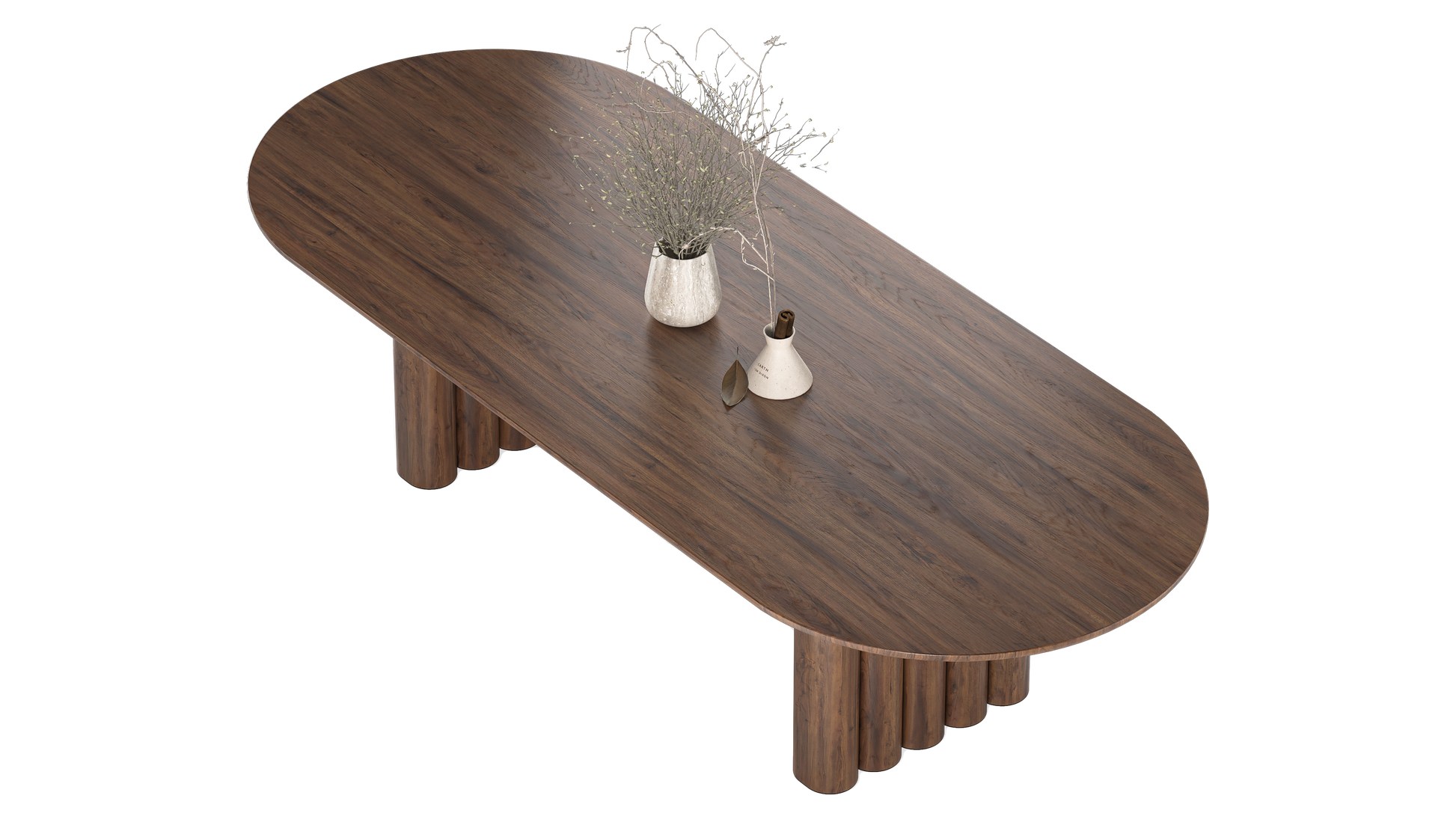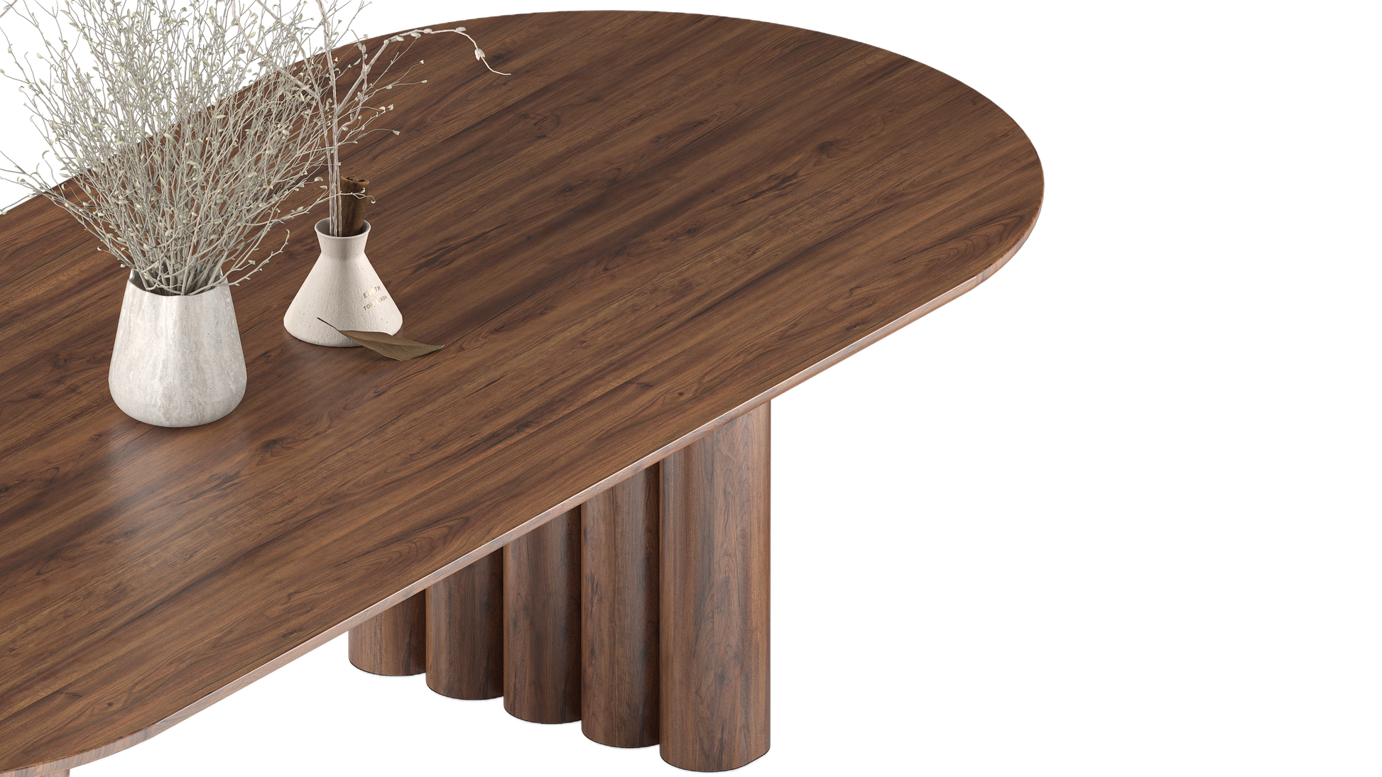 A stunning blend of fluid design and practicality. With its elegant, flowing shape, this table redefines dining experiences by providing a spacious and stylish surface for meals and gatherings. Its contemporary design and generous size make it perfect for hosting everything from casual family dinners to formal dinner parties!
