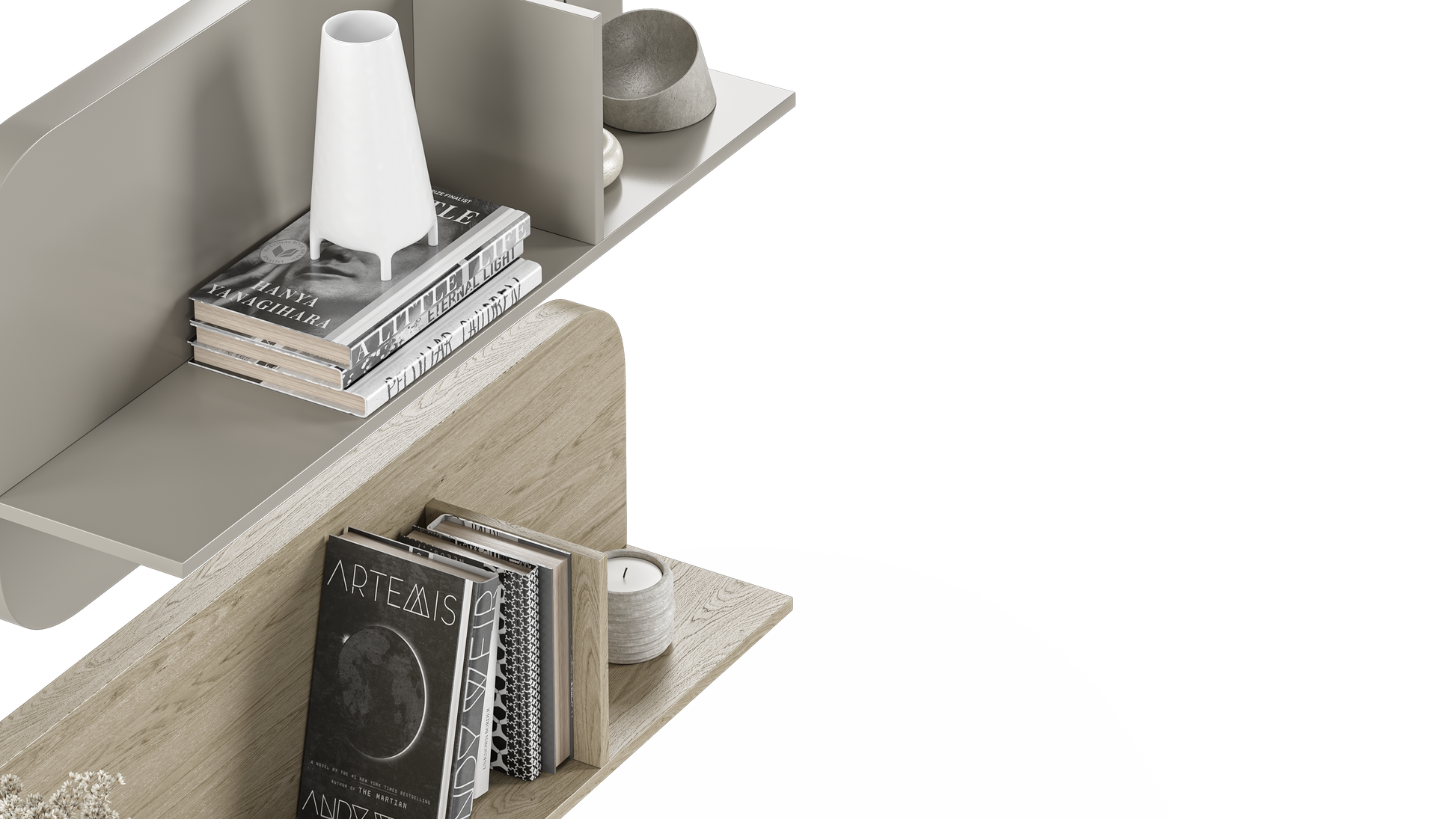 Perfect for books, candles, or curated objects, each tier offers a calm platform for the things you love most. Whether styled solo or paired in multiples, Stack adds a gentle rhythm to your space — making it ideal for cozy corners, reading nooks, or minimalist walls.